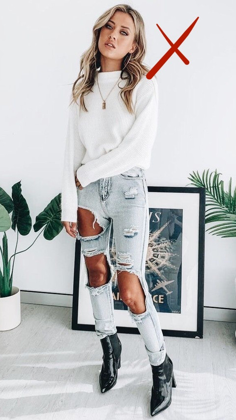 1 - ג'ינסים קרועים - אני לא מדברת על ג'ינסים עם קצת קרעים, את אלו אני אפילו ממש אוהבת. הכוונה היא לכאלו שהם ממש, אבל ממש, קרועים. בעיני זה פשוט לא יפה בשום גיל ובשום שילוב...